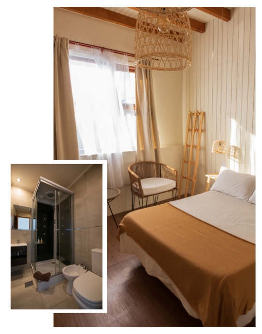 Nuestra propuesta combina el espíritu acogedor de un hotel pequeño con servicios esenciales para viajar con comodidad: habitaciones dobles con baño en suite, desayuno buffet patagónico, wifi de alta velocidad, calefacción y atención personalizada para acompañarte antes y durante tu viaje.